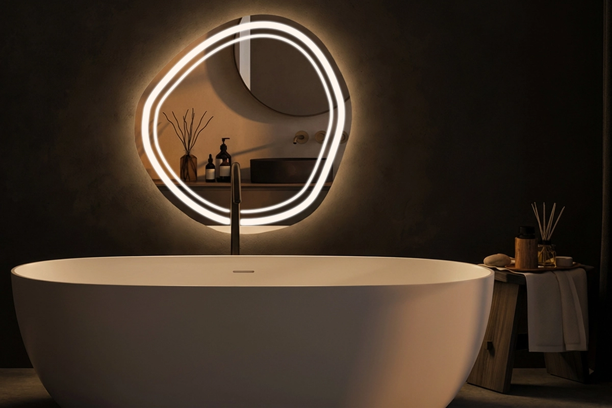 Precyzyjnie szlifowane i polerowane krawędzie są dopełnieniem perfekcyjnie wykonanej tafli z najwyższą dbałością o każdy szczegół. Do tego uzupełniające tylne podświetlenie lustra znakomicie podkreśla krawędzie oraz delikatnie rozświetla powierzchnię ściany, na której się znajduje.